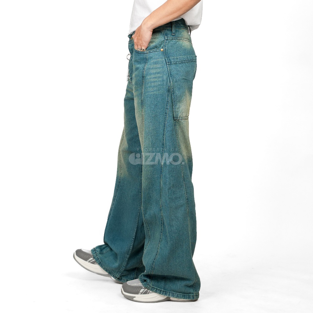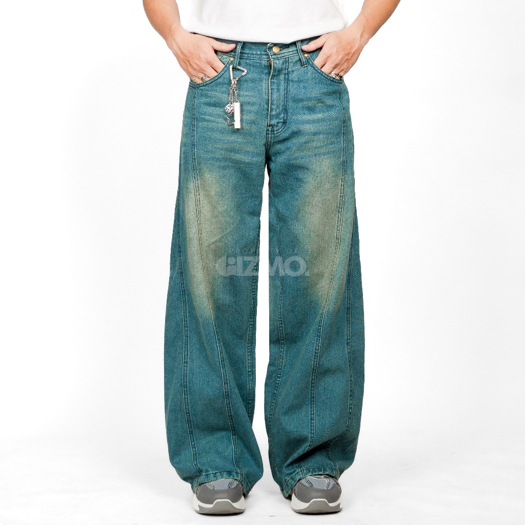 Gizmo - Baggy Jeans Pecah Pola - Split Flow Urban Blue - Streetwear Baggy Style- Lebar Gombrong Skena - Celana Denim Car