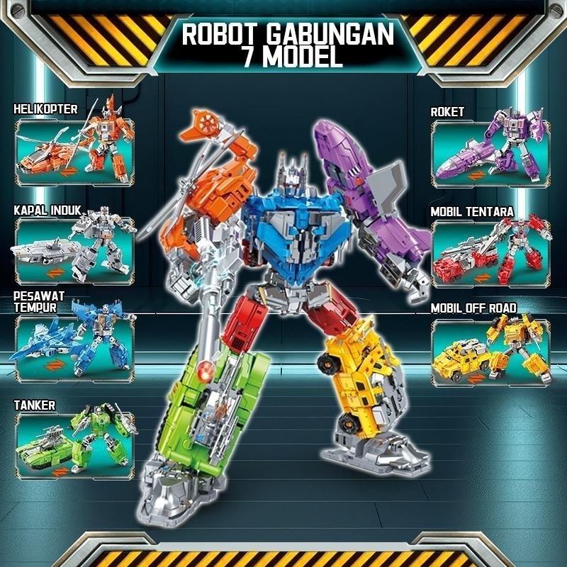 7-in-1 Mainan Robot Transformasi : Tank, Pesawat, Kapal Induk, Mobil & Kombinasi Super untuk Anak
