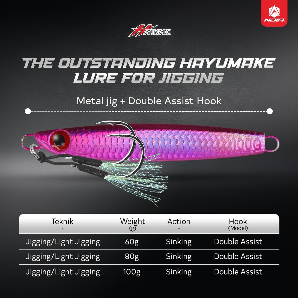 Metal Jig + Assisthook Double Hook - Hayumake Gacrux Umpan Jigging Siap Pakai