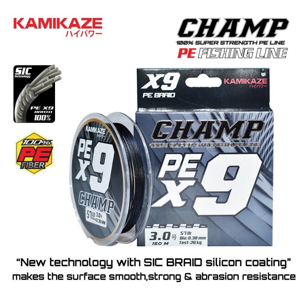 Kamikaze Senar Pancing Pe Champ X9 150Meter Black Sic Technology X9 Braide 100 PERSEN Tali Pancing Jigging Dan Casting