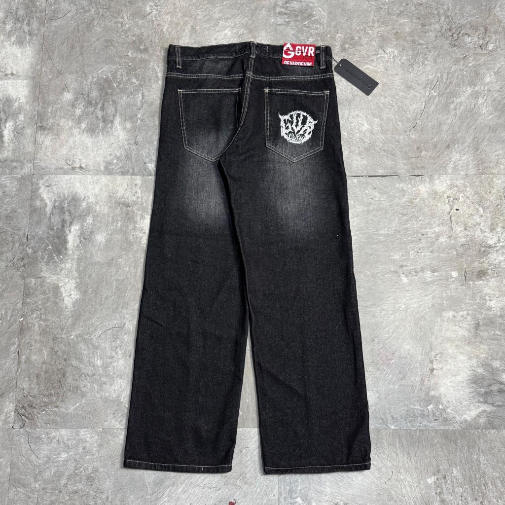 Gevar - Celana Jeans Baggy Blackwash Pecah Pola Oversize Gombrong