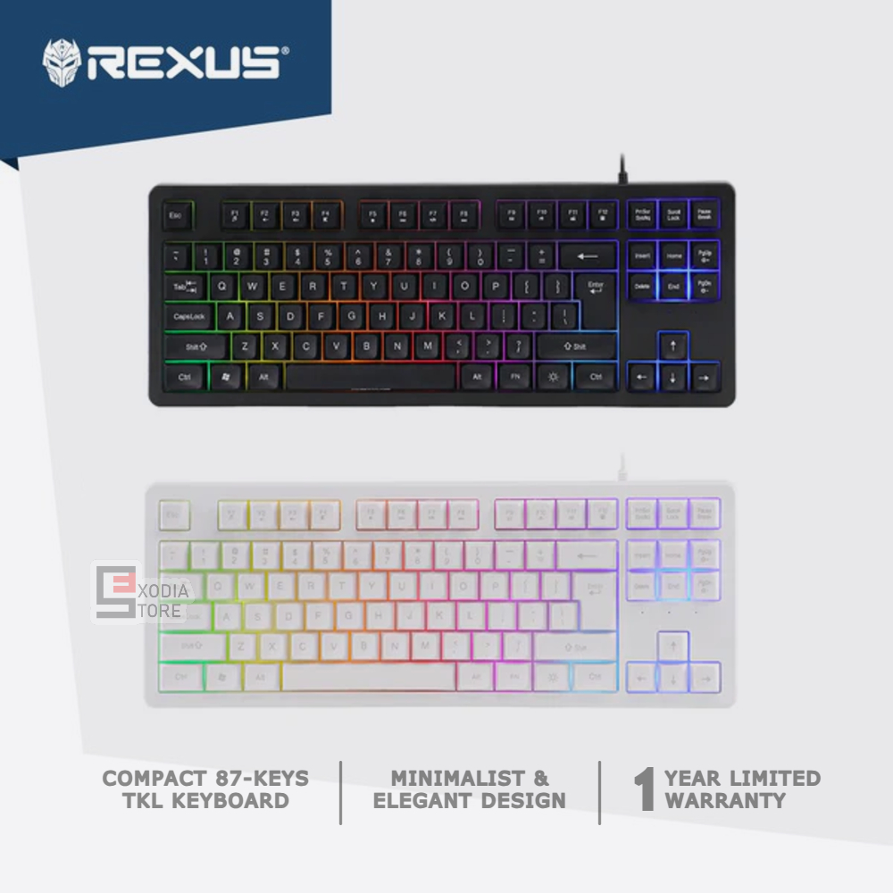 REXUS FORTRESS K9G RGB GAMING KEYBOARD TKL 87-KEYS 3 MODE LED RAINBOW RGB RESMI 1 TAHUN