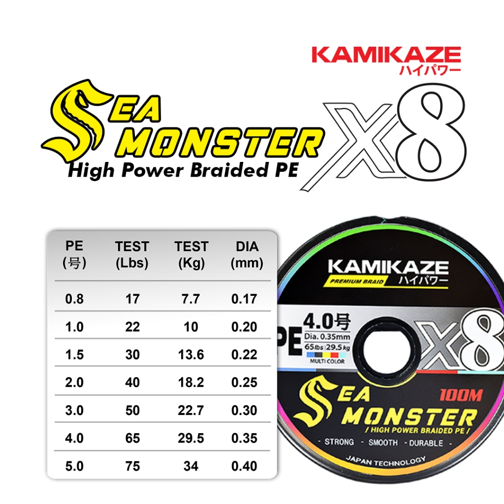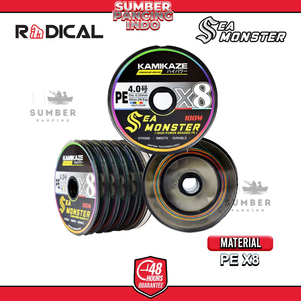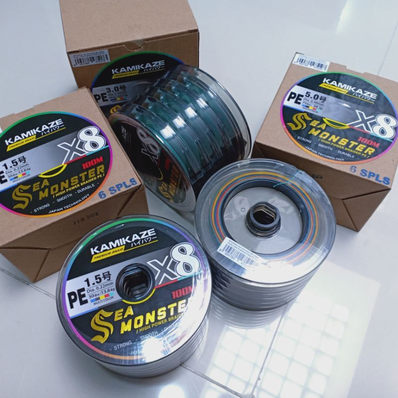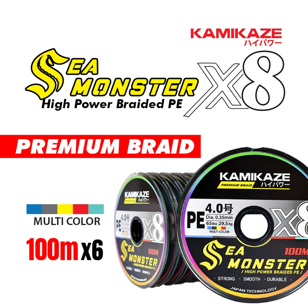 Kamikaze Senar Pancing Pe Sea Monster X8 100M Multicolor Tali Pancing Pe Connecting Untuk Jigging