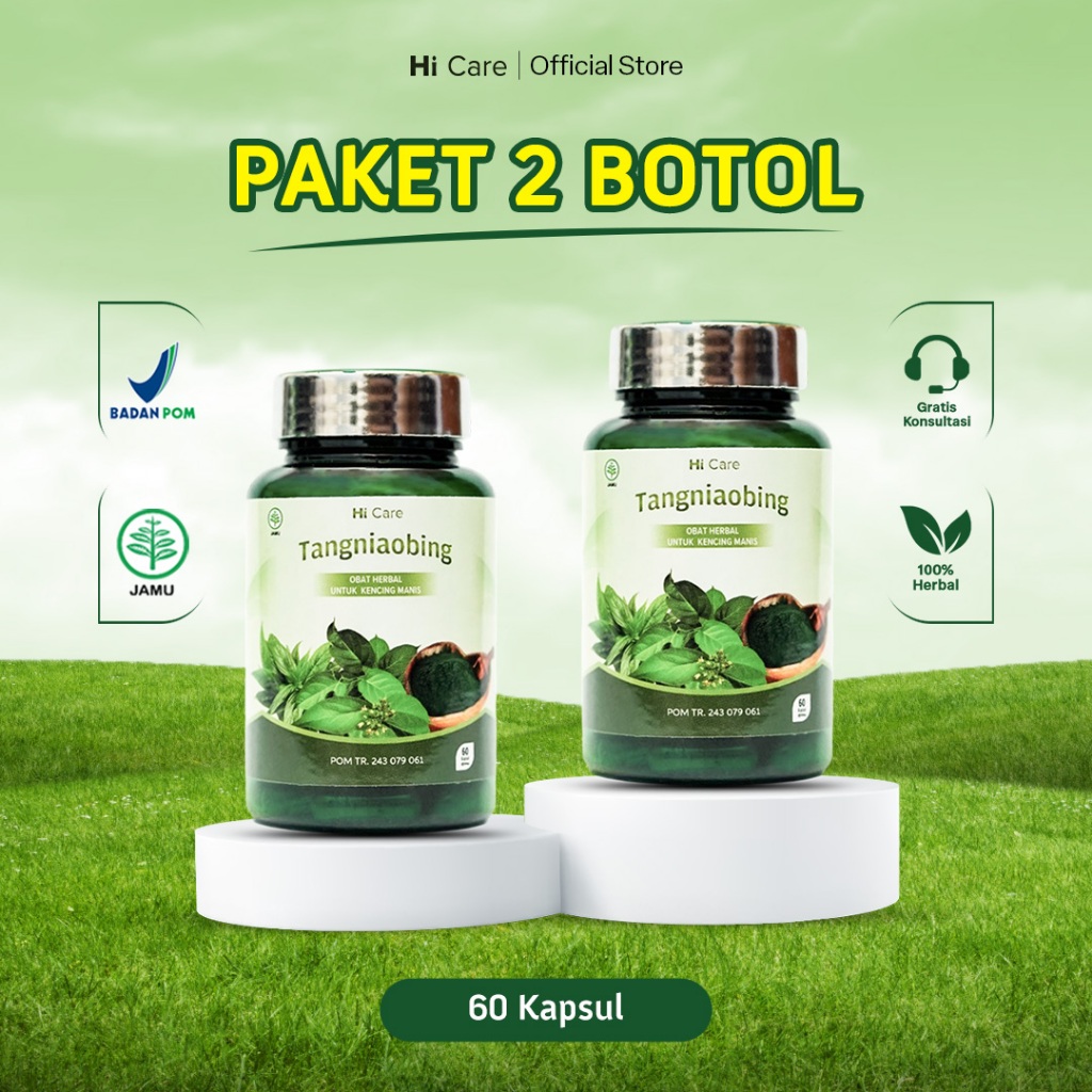 Hi Care Tangniaobing - Paket 2 Botol 60x60 Kapsul - Obat Herbal Untuk Diabetes dan Kencing Manis