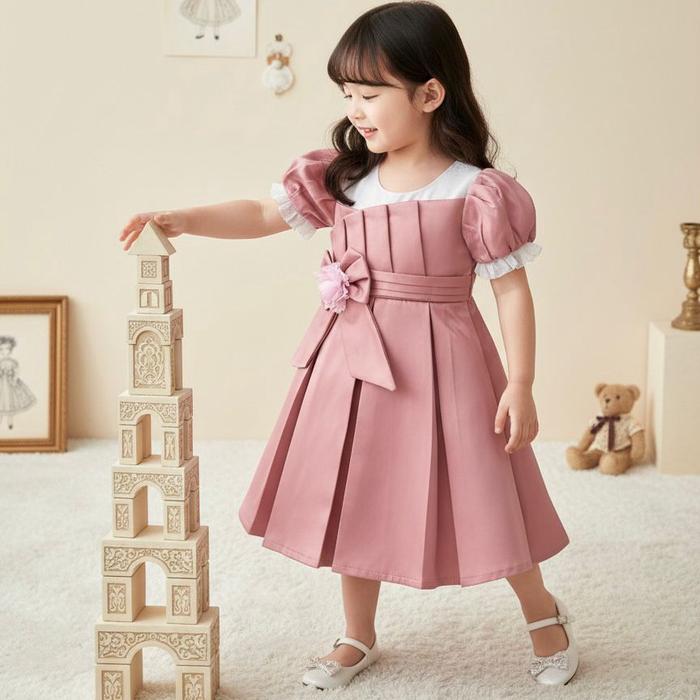 Two Mix - Baju Dress Anak Perempuan Pesta Satin Mewah 1-12 Tahun Y909 - Coklat, 2