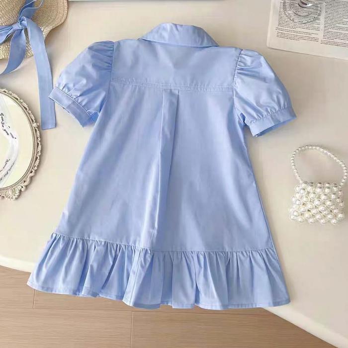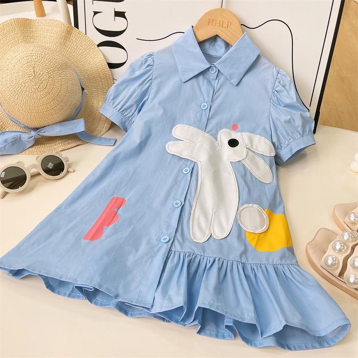 Loli-Jkt Bd- 669 Dress Kemeja Anak Biru Rabbit Lengan Balon Pendek Size 80-140 - Bluerabbit, 90