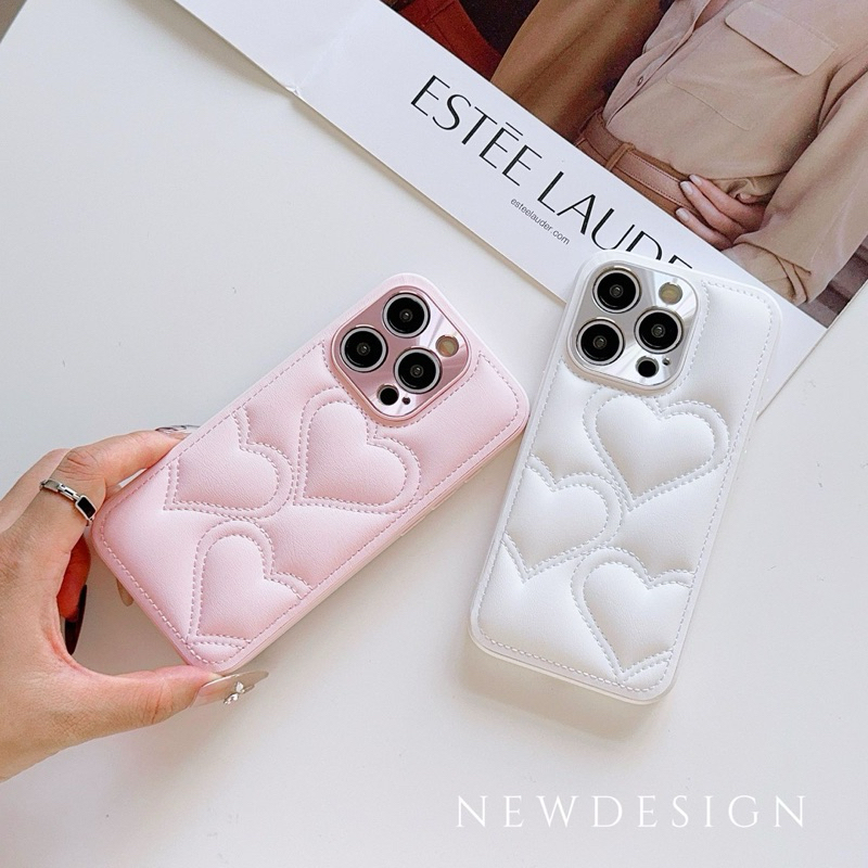 Leather Heart Stitch Softcase Casing Case Hp Lucu Iphone Xs Xs Max Xr 11 Pro Max 12 Pro Max 13 Pro Max 14 Pro Max 15 16