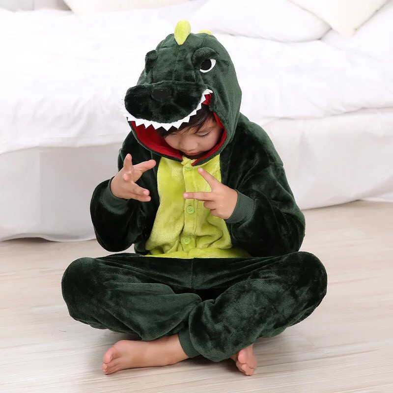 Kostum Onesie Dino Dinosaurus Hijau Cosplay Piyama Anak