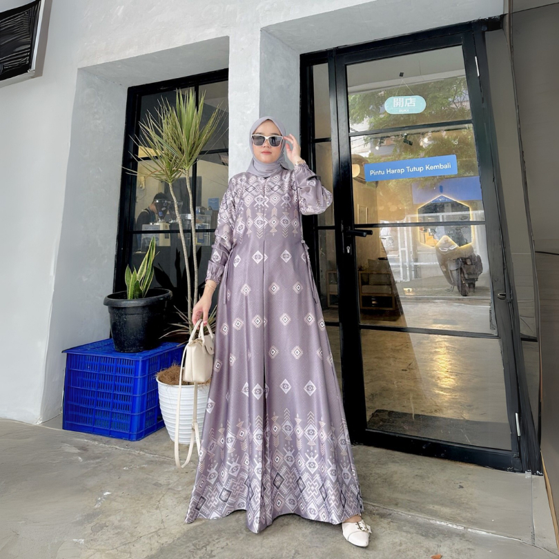 Gamis Aura | Gamis Pesta Silky Printing Premium Bunsui Jumbo Terbaru | Dress Mewah Makmara Silk