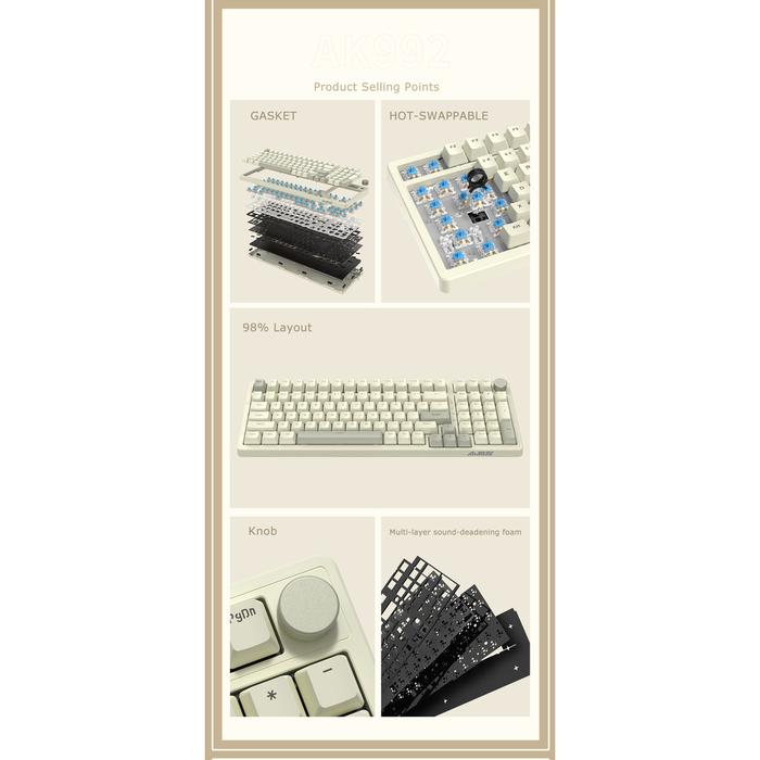 Ajazz Ak992 Retro Wired Mechanical Keyboard 99 Keys - Retro, Red Switch