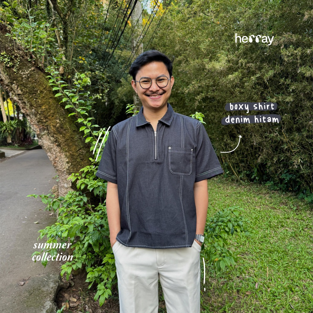 Kemeja Boxy Denim Hitam - Summer - Herray
