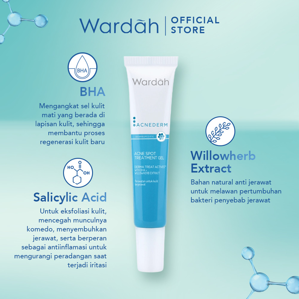 WARDAH Acnederm Acne St Treatment Gel 15 ml - Totol Jerawat dengan BHA dan Willowherb Extracts - Menyamarkan Noda Bekas Jerawat dan Mengurangi Kemerahan - Skincare