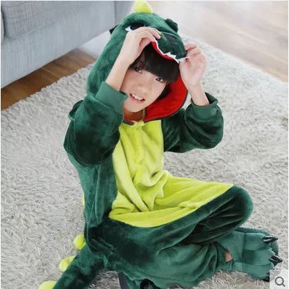 Baju Onesie Kostum Dino Dinosaurus Hijau Anak Cosplay Piyama