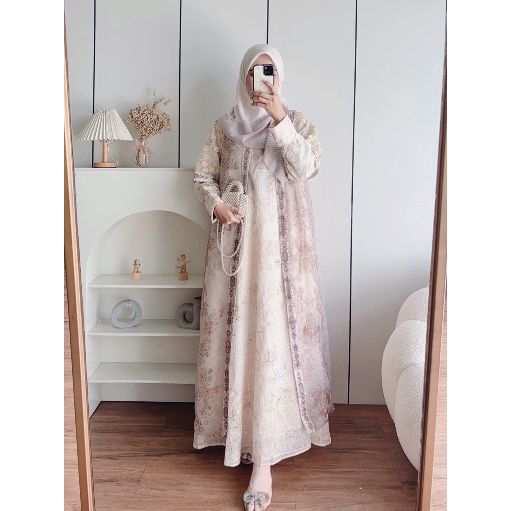 CANDY LADY Pesona Set Hijab Maxi / Gamis Sultan Lebaran Sarimbit Keluarga Dress Ramadhan Motif Premium Silk Sutra Organza