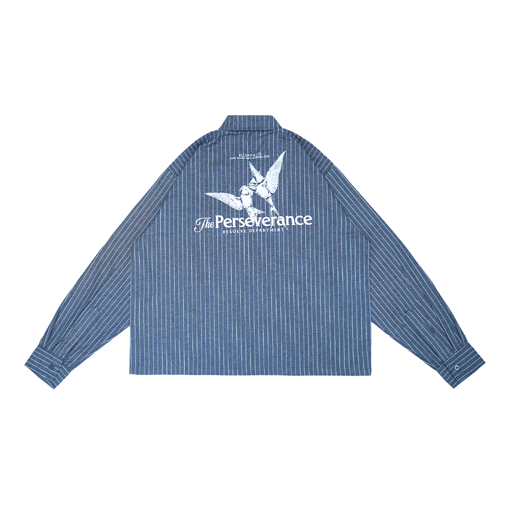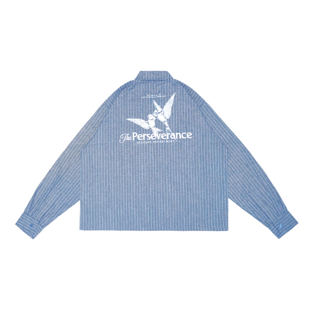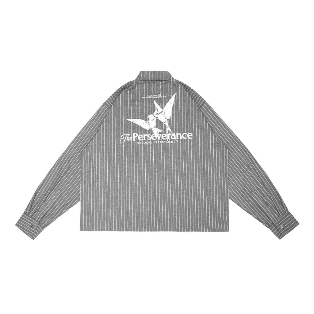 Ellsky - Kemeja Boxy Salur Lengan Panjang "Perseverance"