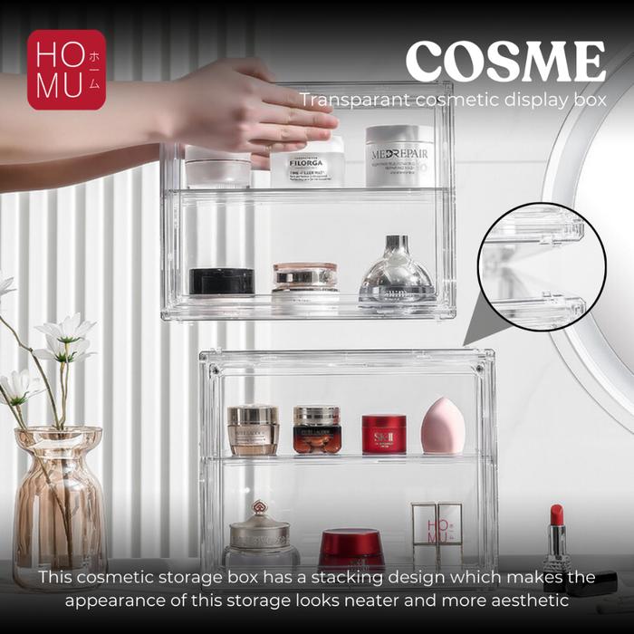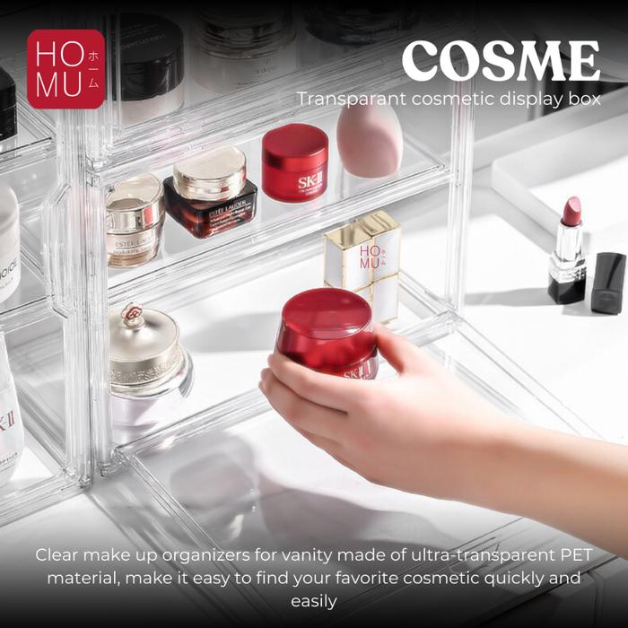 Homu Cosme Xl Acrylic Transparant Cosmetic Display Box Kotak Penyimpanan Kosmetik Display Transparan Full Transparan Hig