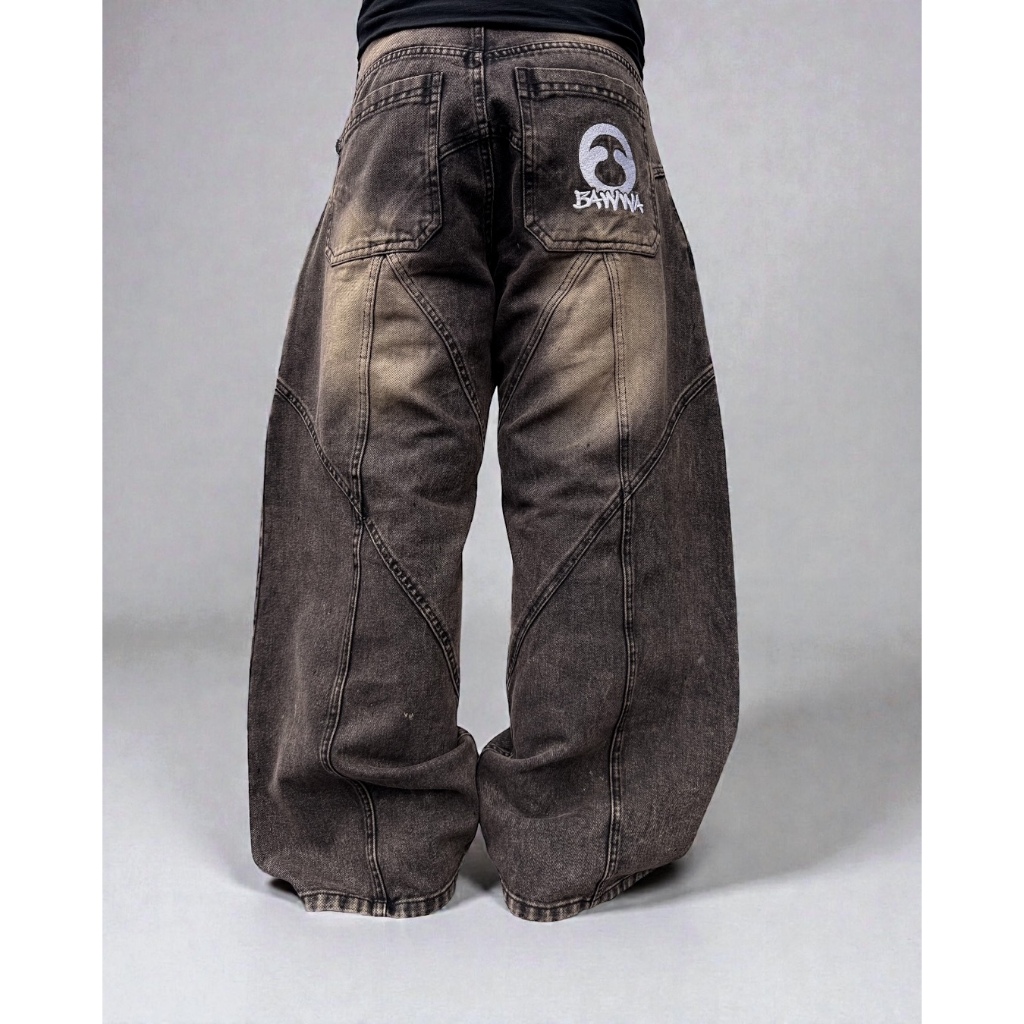 Bawwa Santai | Vol 2 Celana Baggy Jeans Pecah Pola | Vintage Brown Sandwash Fading | Carlos Series | Celana Denim| Celan