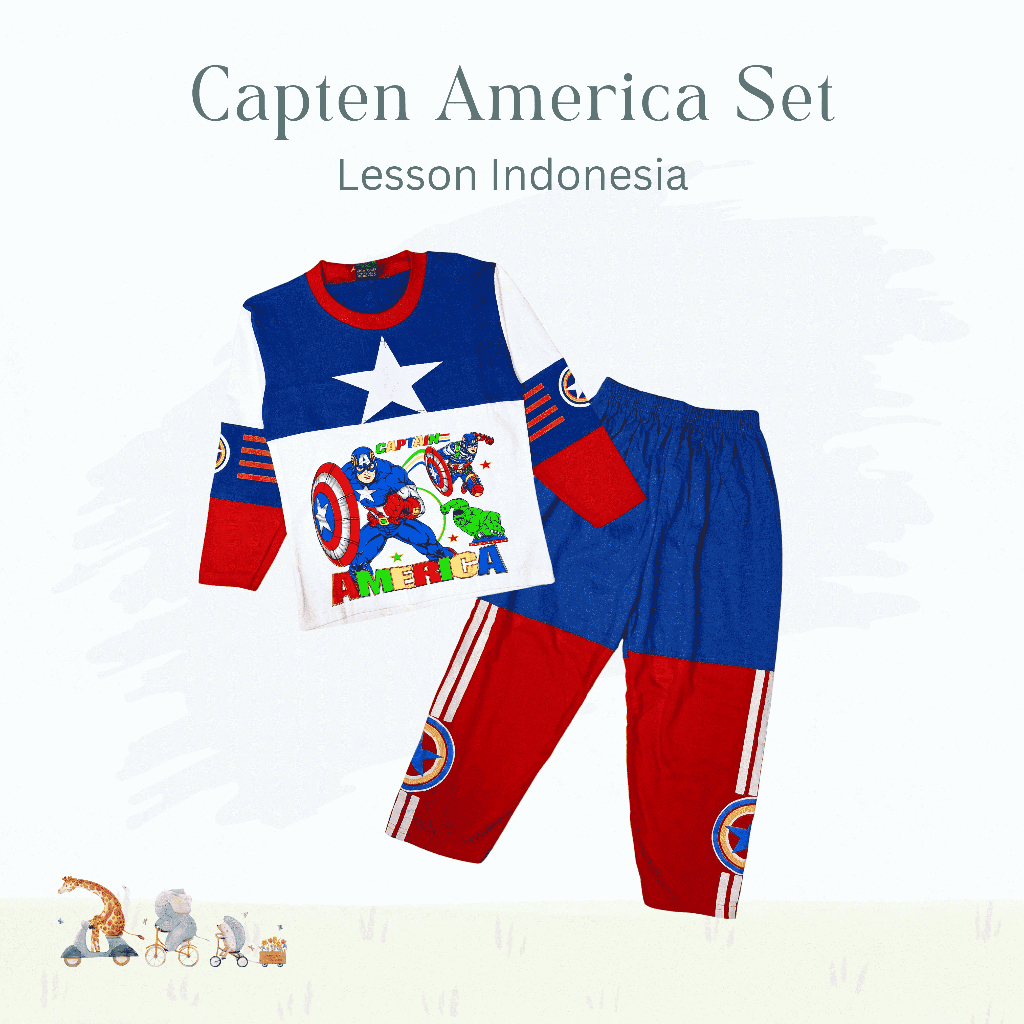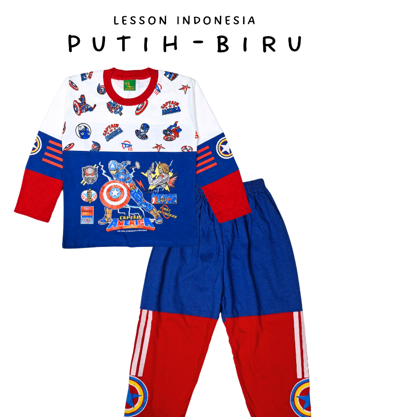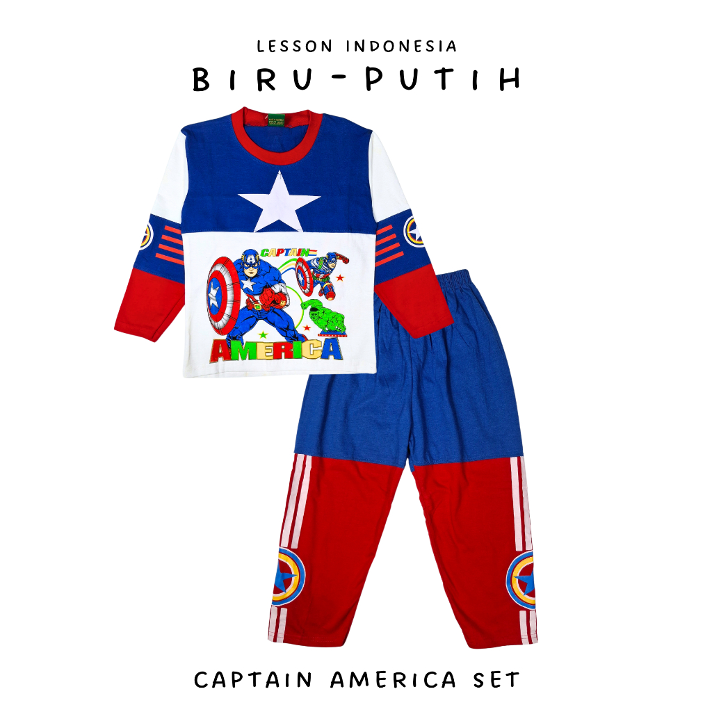 Setelan Anak Laki Laki Baju Tidur Motif Captain America Lesson