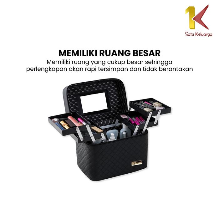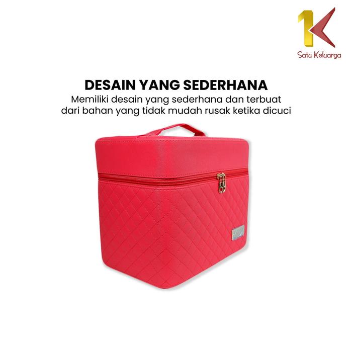 Sk K1 Tas Makeup Kosmetik Motif Petak Elegant Beauty Case Waterproof - Merah, K1 Petak