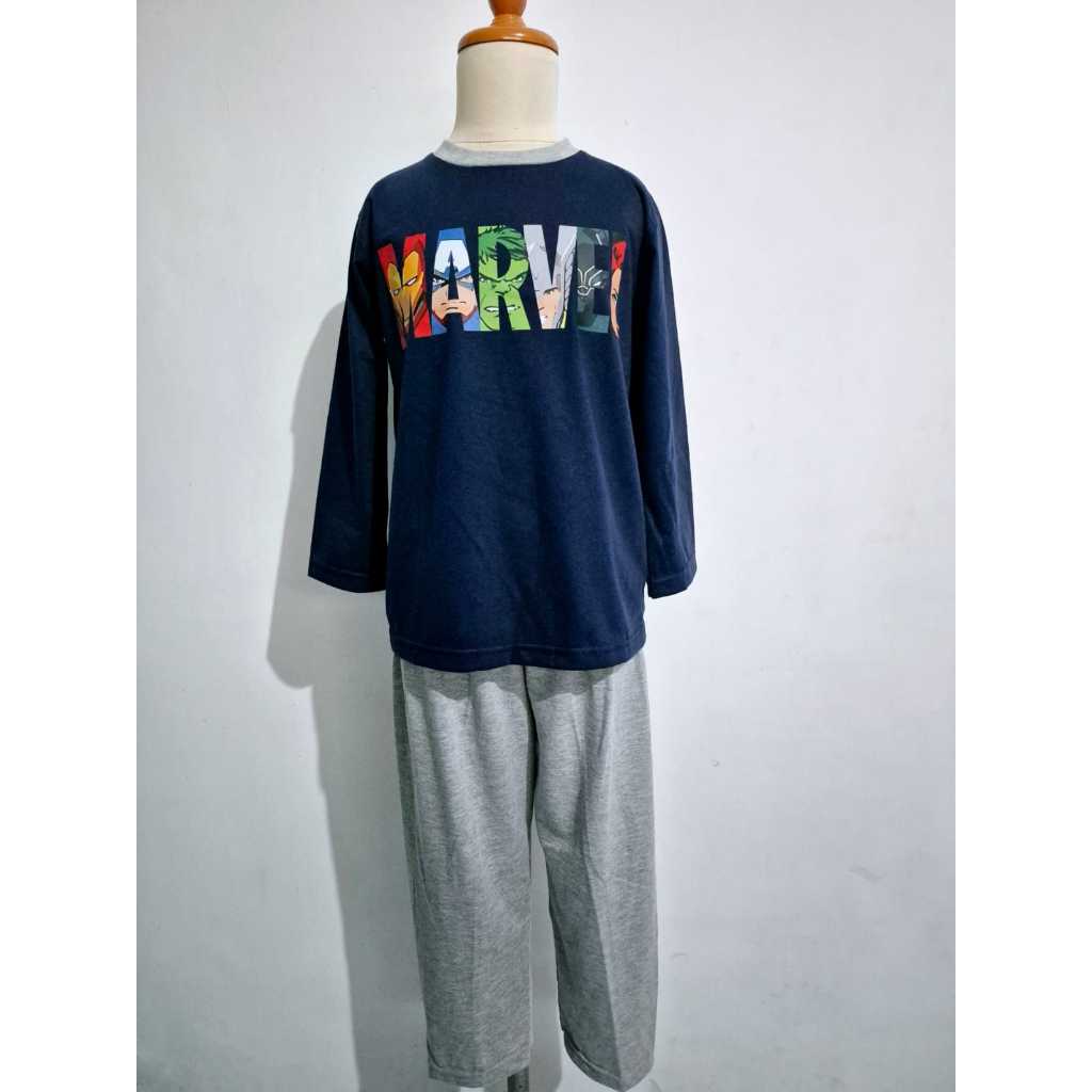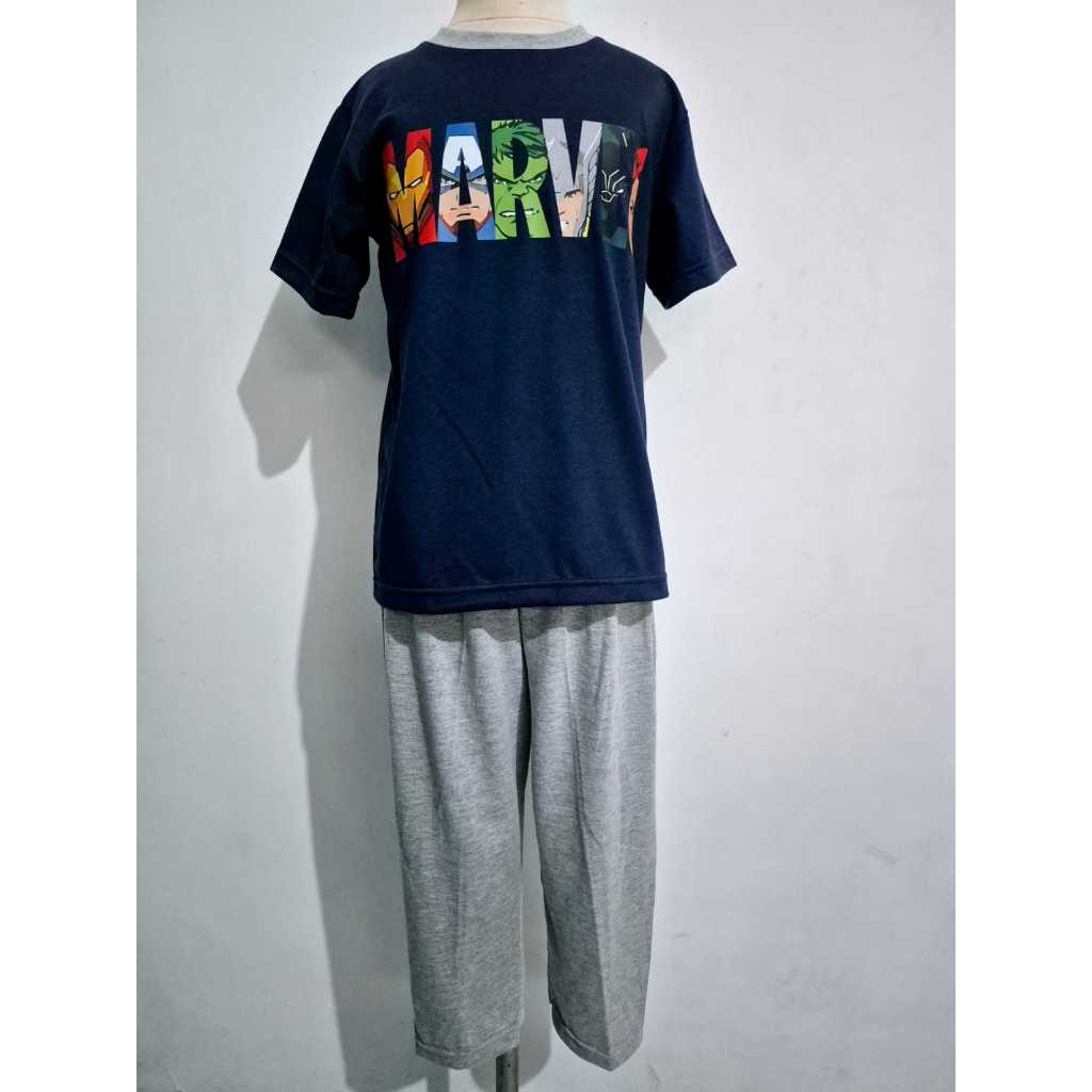Helo Piyama - Baju Tidur Stelan Kaos Anak Cowok Marvel Tulisan Navy