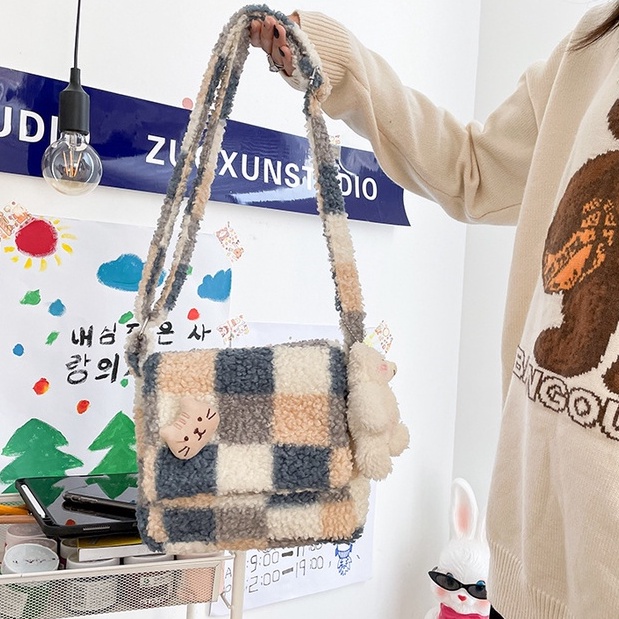 Mismi Kaitlyn Bag Tas Selempang Wanita Checker Plush Cute Sling Bag Resleting Perempuan Stylish - 20K