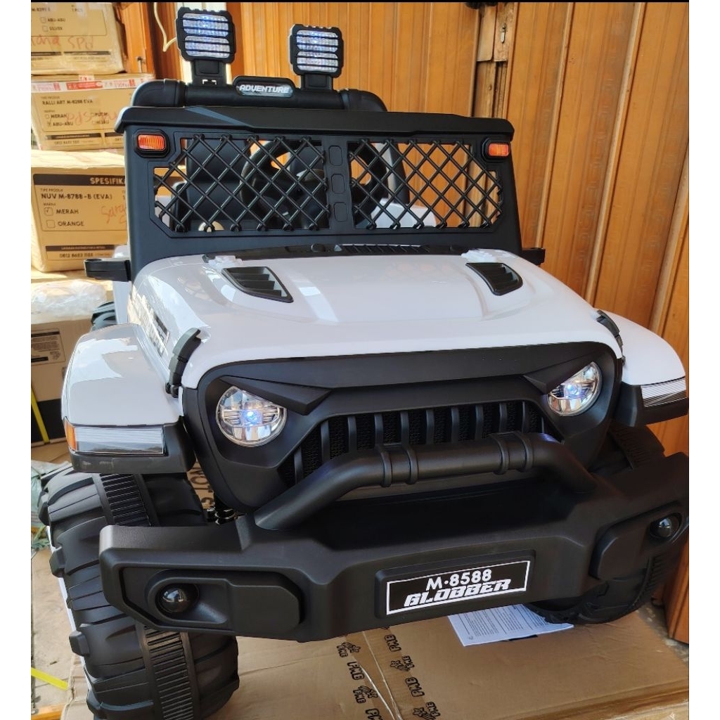 Mobil Aki Mainan Anak PMB 8588 8788B Jeep Rubicon Blobber Ban Besar Dual Aki Dual Dynamo