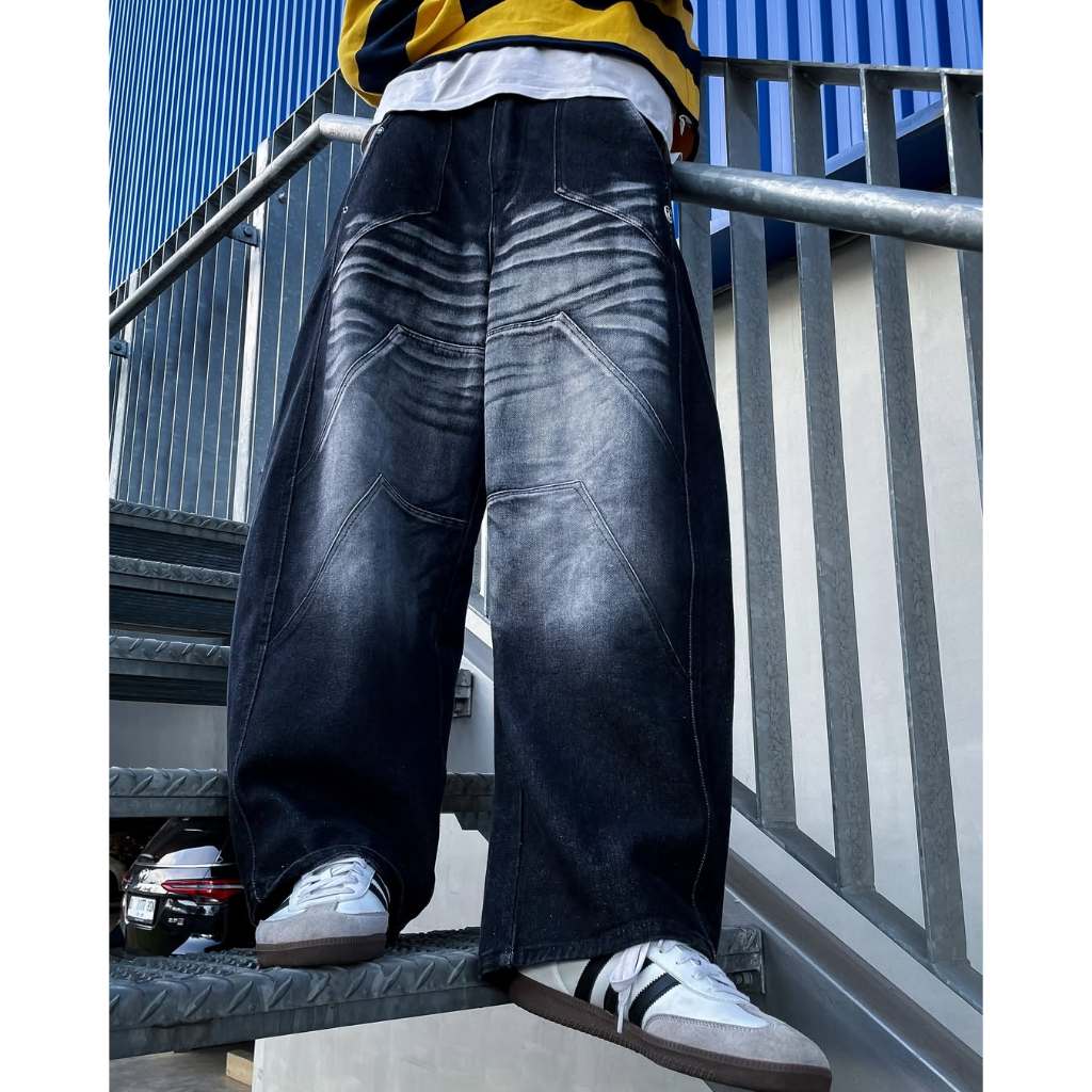 Bawwa Santai | Celana Baggy Barrel Black Washing Jeans Pecah Pola | Ace Series | | Celana Gombrang | Baggy Pants | Celan