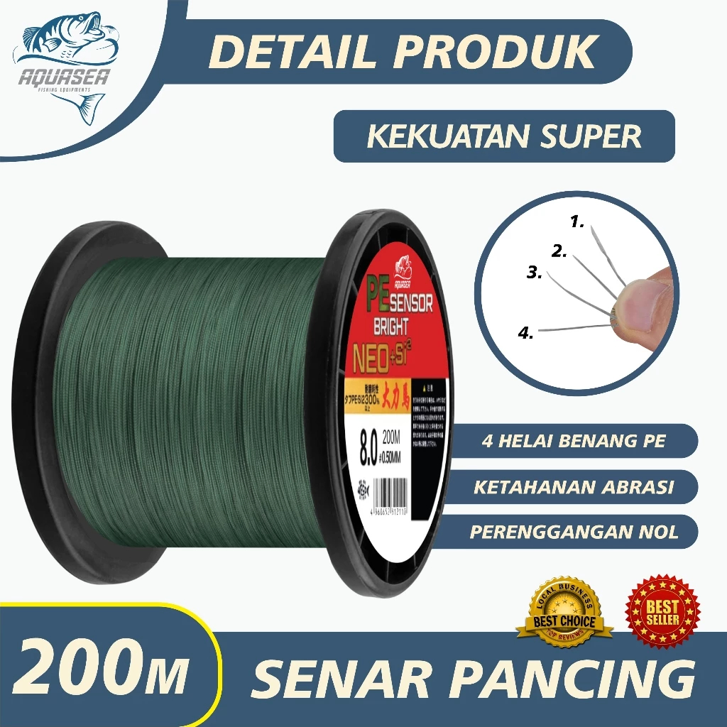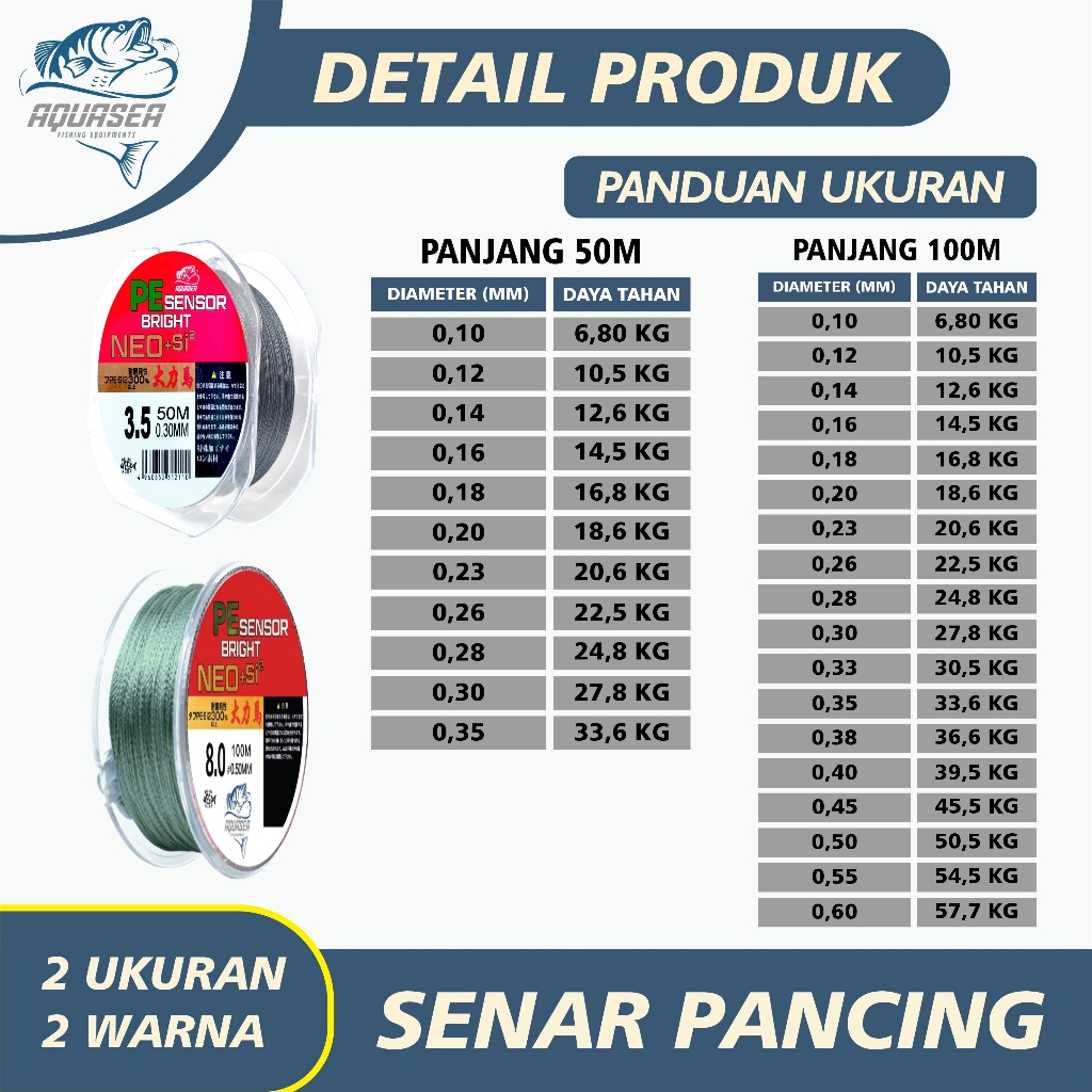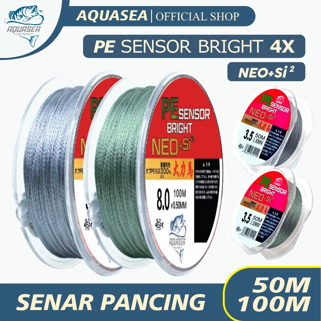 Aquasea - Tali Pancing 50M & 100M Senar Pancing Pe Sensor Bright Neo+Si2 Abu-Abu & Hijau Bahan Pe