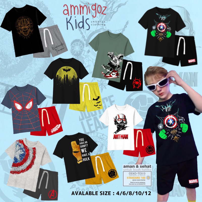 Setelan Pendek Fashion Anak Laki Laki Ammigoz Marvel 4-12Tahun 2187