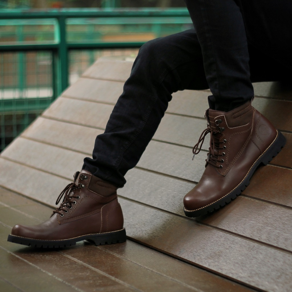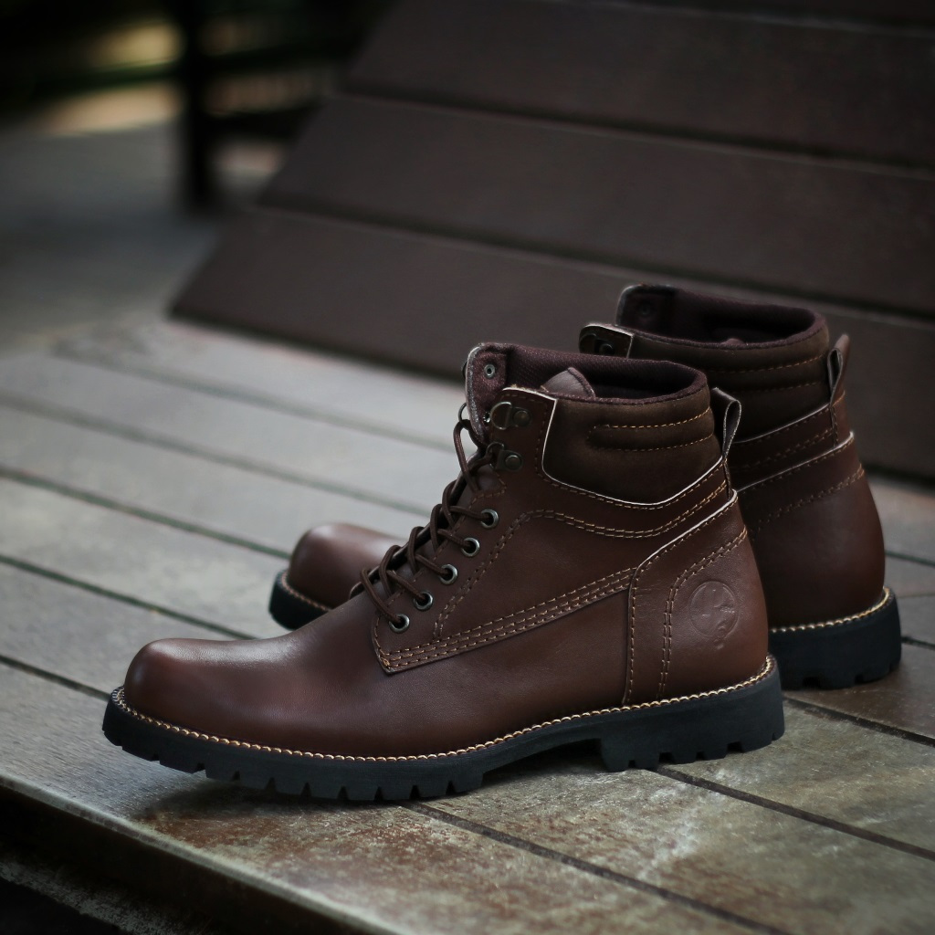 Pentatonic Dark Brown Original X Reyl Man Sepatu Safety Boots Coklat Kulit Sapi Asli Pria Kerja Proyek Lapangan Outdoor