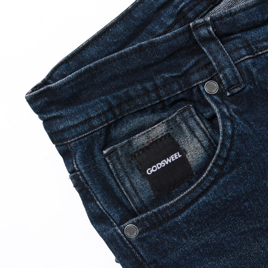 GodsWeel Celana Jeans Reguler Pria Standar Panjang Stretch Meral Aksen Selvedge Biotink