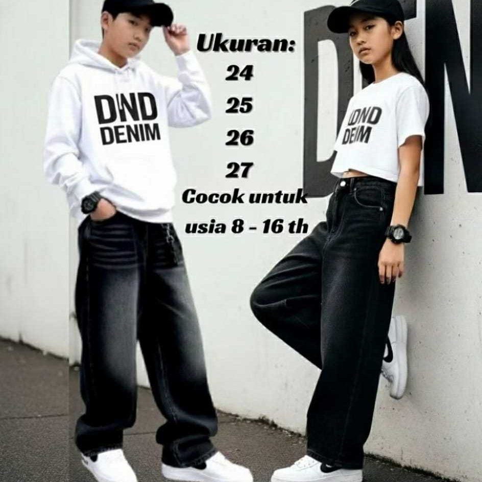 Celana Skena Jeans Anak Baggy Loose Jeans Celana Gombrong Retro Unisex Usia 8-14 Tahun