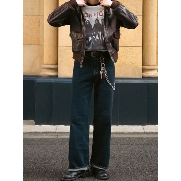 Celana Jeans Panjang Pria Black Standar Regular loose Straight fit jumbo big Bahan Denim KoreanStyle