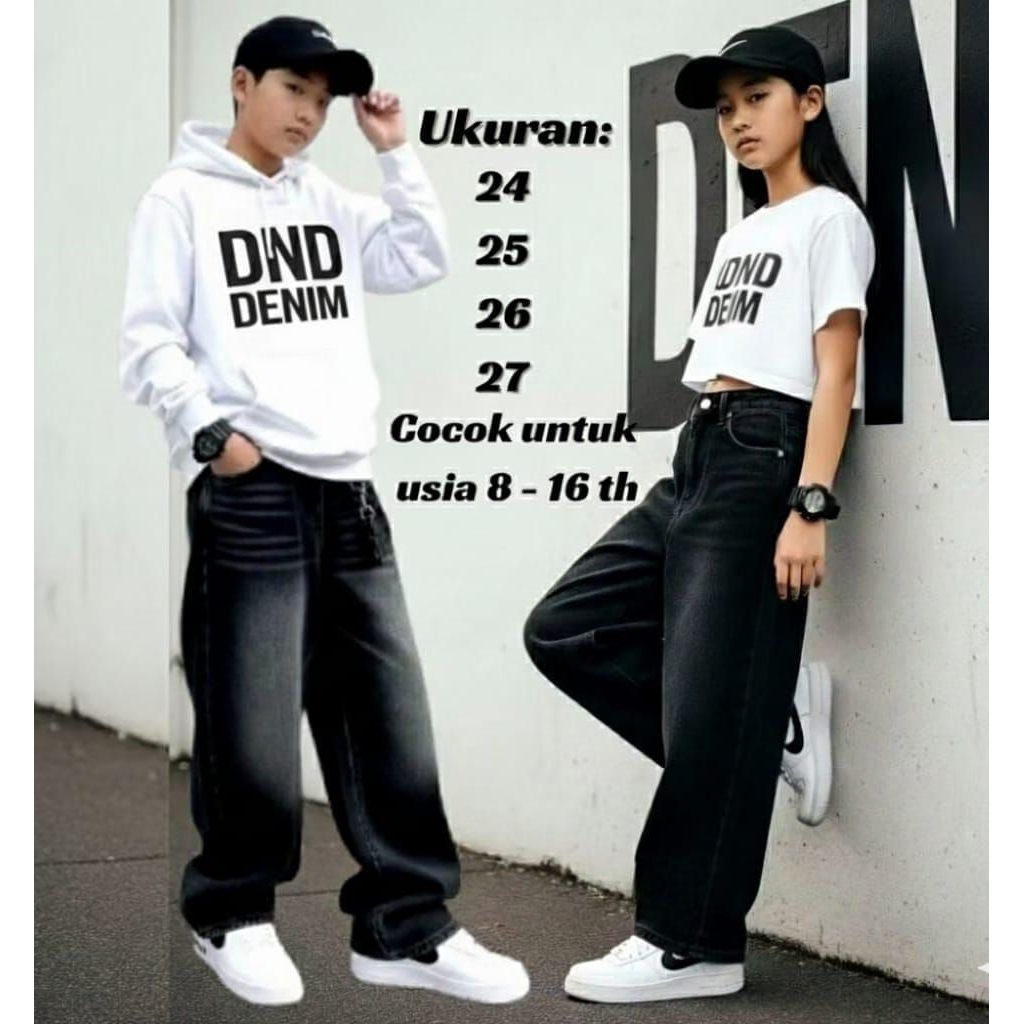 Dnd-Celana Skena Jeans Anak Baggy Jeans Gombrong Retro Unisex Usia 8-15 Tahun
