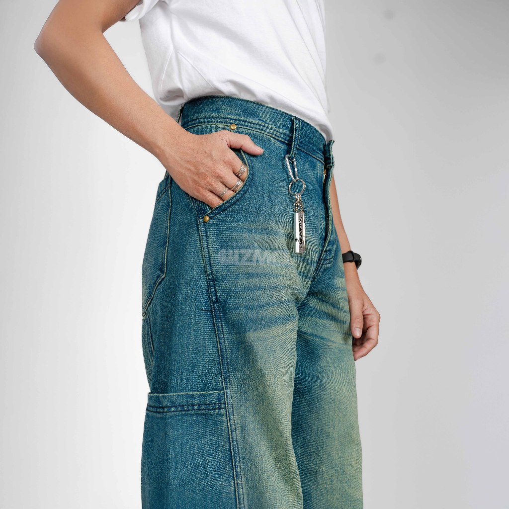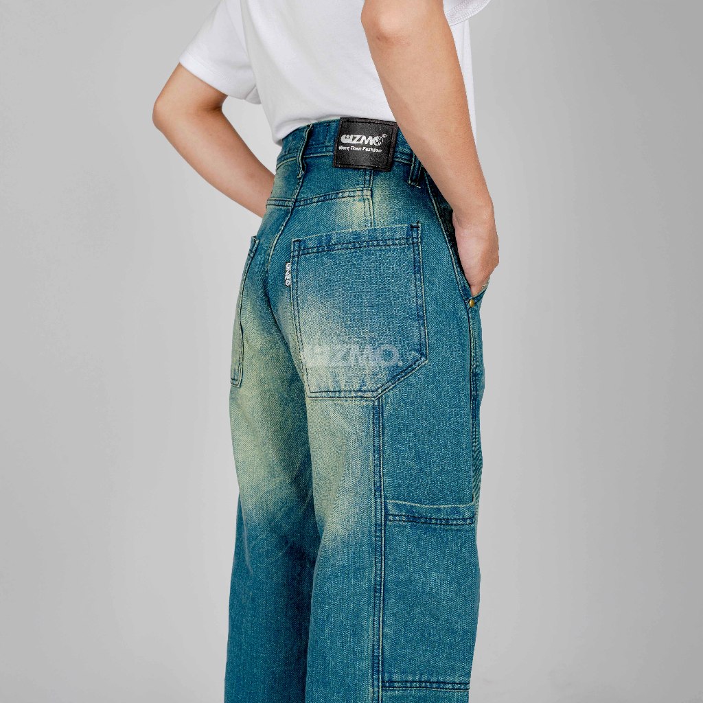 Gizmo - Baggy Jeans Pecah Pola - Origami Urban Blue - Streetwear Baggy Style- Lebar Gombrong Skena - Celana Denim Cargo