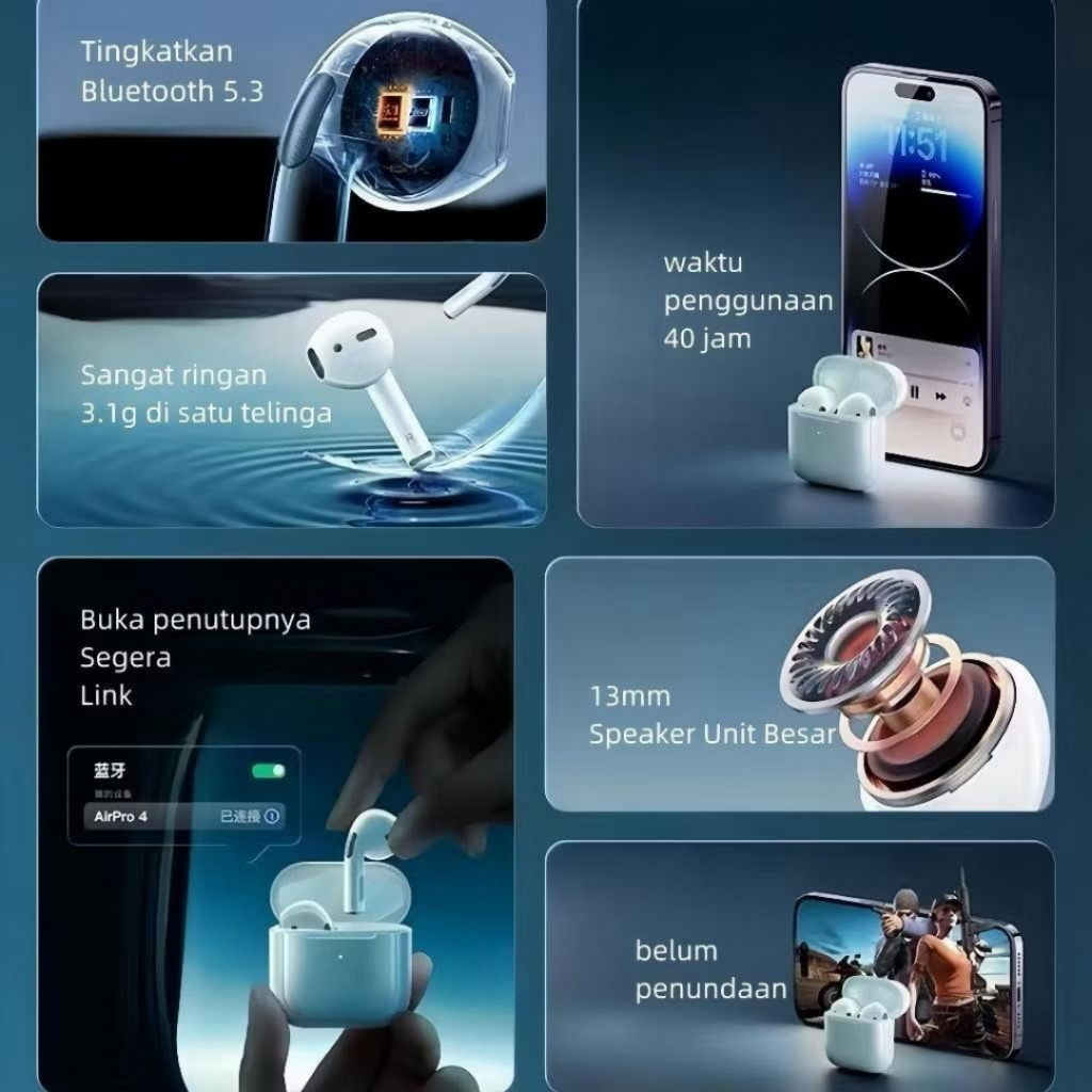Airpod Pro4 Headset Bluetooth Wireless Mini Poket Size Hifi Stereo Sound