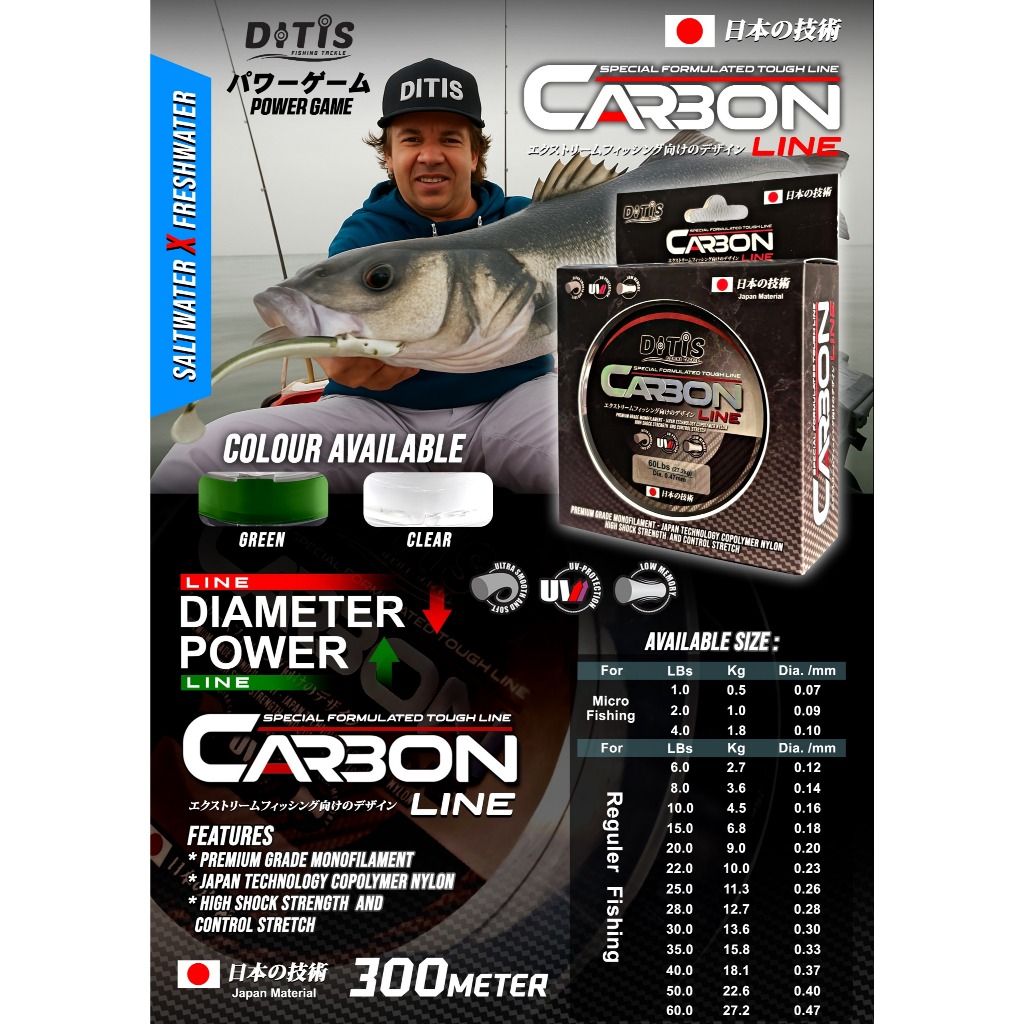 Senar Pancing Ditis Carbon Line Galatama 0.07Mm - 0.50Mm Clear & Green