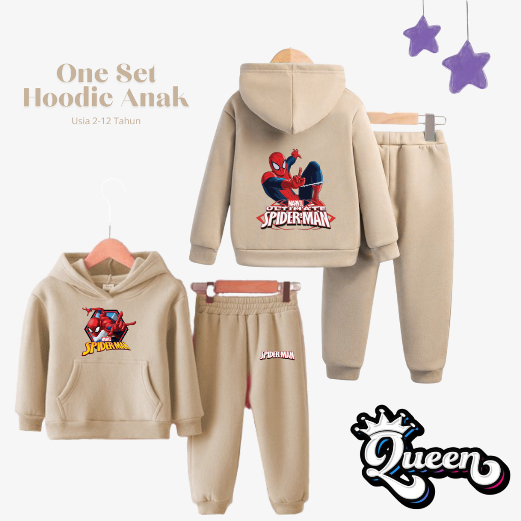 Setelan Hoodie Spiderman Anak Laki-Laki Perempuan Usia 2-12 Tahun