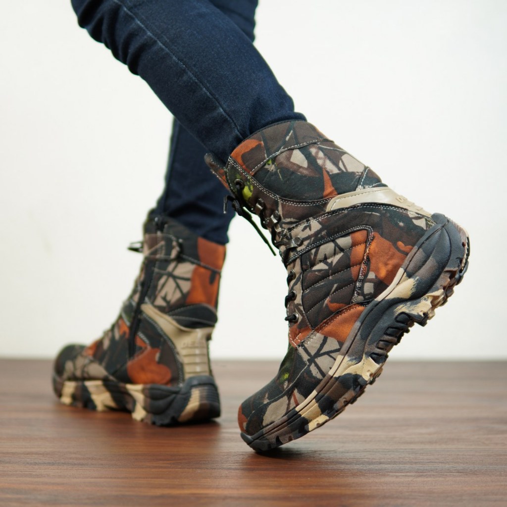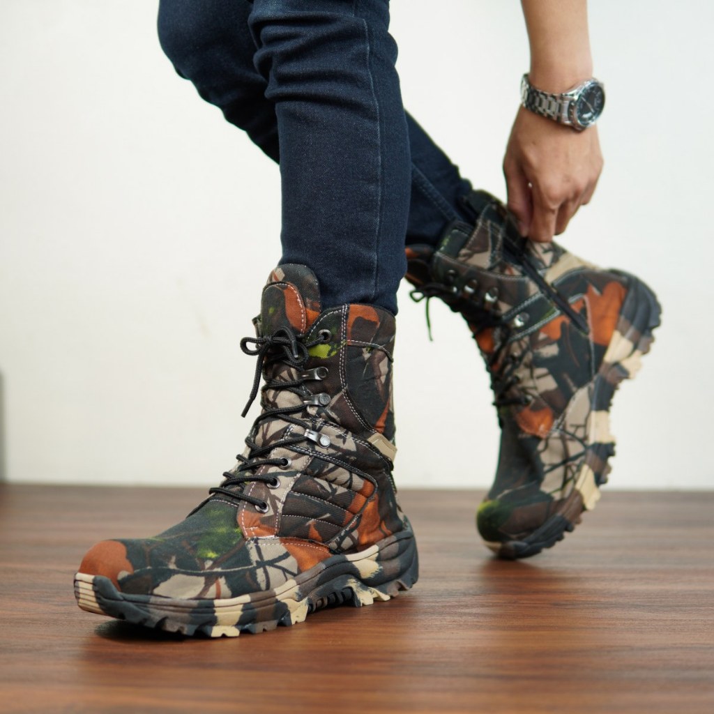 Sepatu Safety Boots Pria Sepatu Pdl Camo Loreng 8 Inch Sepatu Pria Ujung Besi Sepatu Boots Bikers