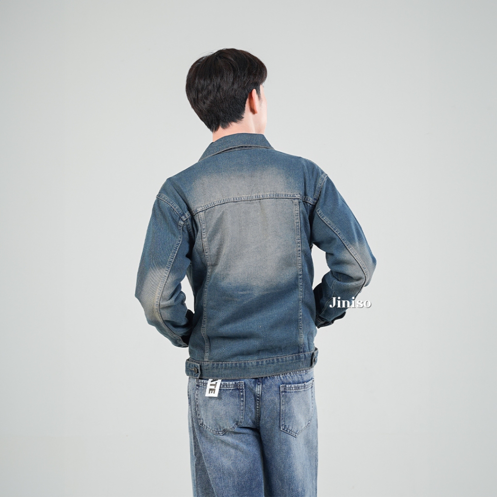 Jiniso Pria Jaket Jeans Oversize Vintage Blue Wash