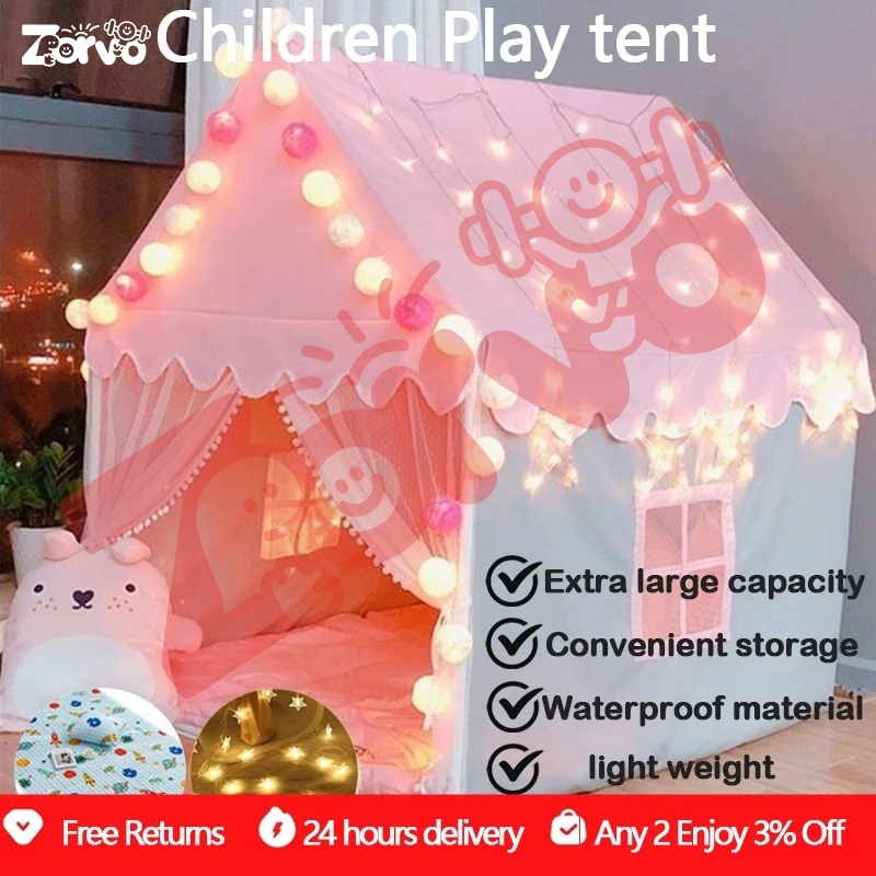 Zorvo Mainan Tenda Anak Perempuan Tenda Princess Anak Jumbo Rumah Indoor Outdoor Portable