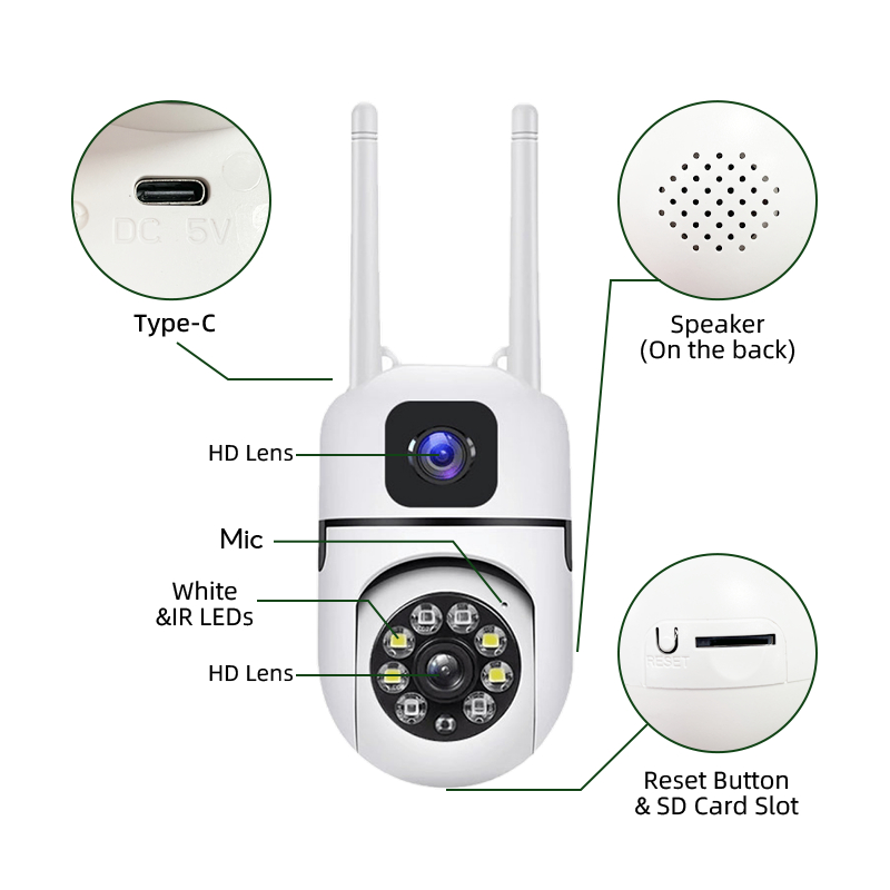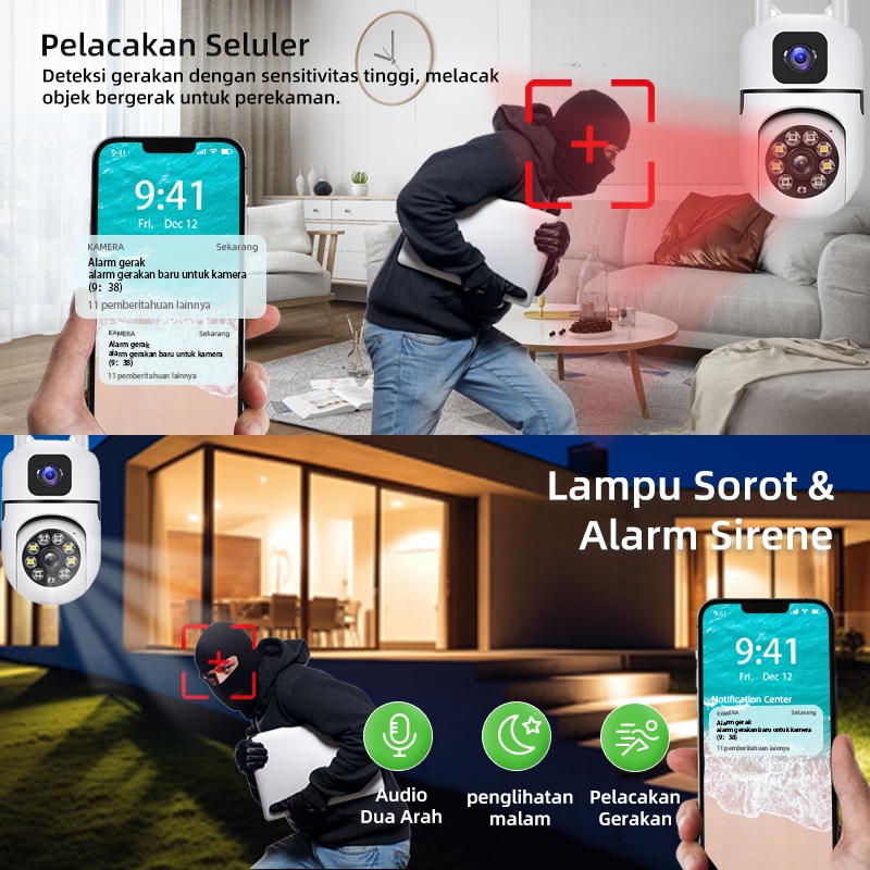 CCTV WiFi Dual Lensa Outdoor 1080P Full HD 1 Kamera Ganti 2 Pantau Lewat HP Night Vision Tahan Hujan