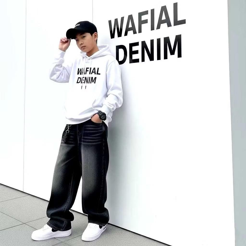Unisex Celana Skena Anak Laki Laki Perempuan Jeans Panjang Baggy Loose Gombrang Korean Style Polos Hitam