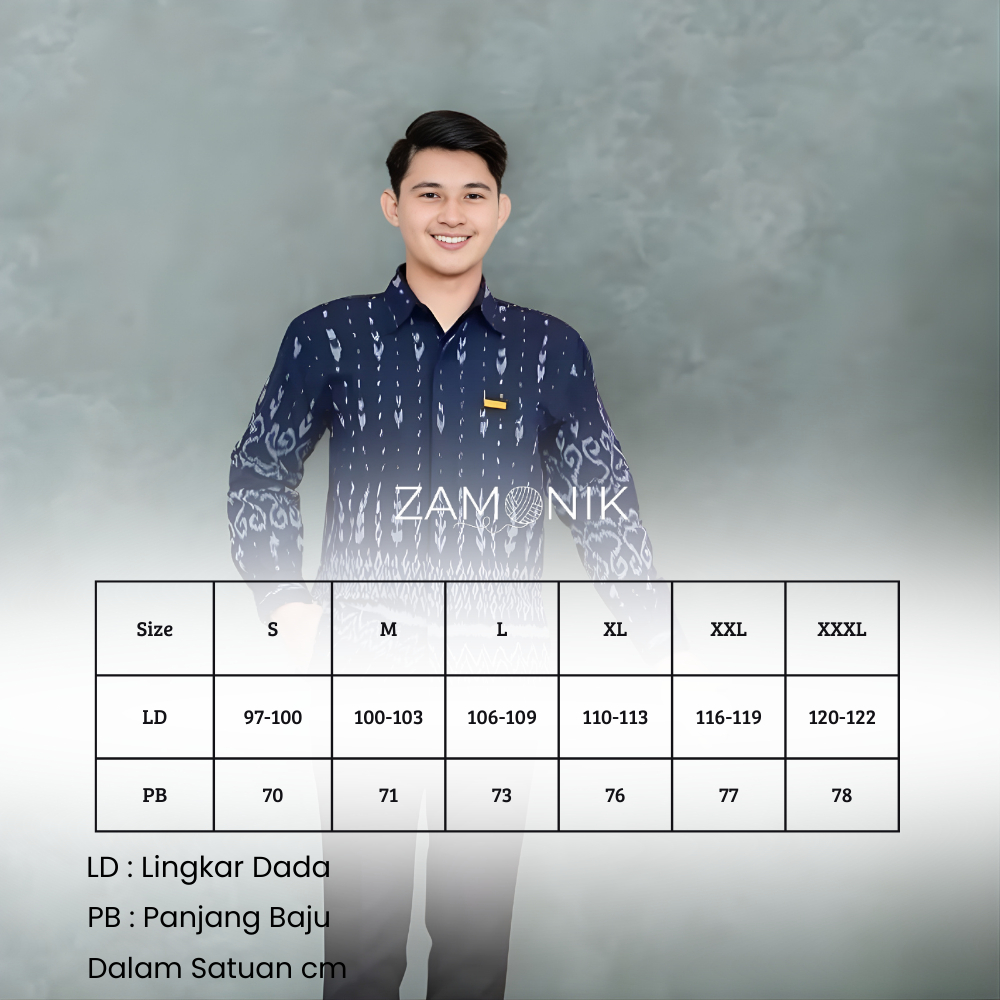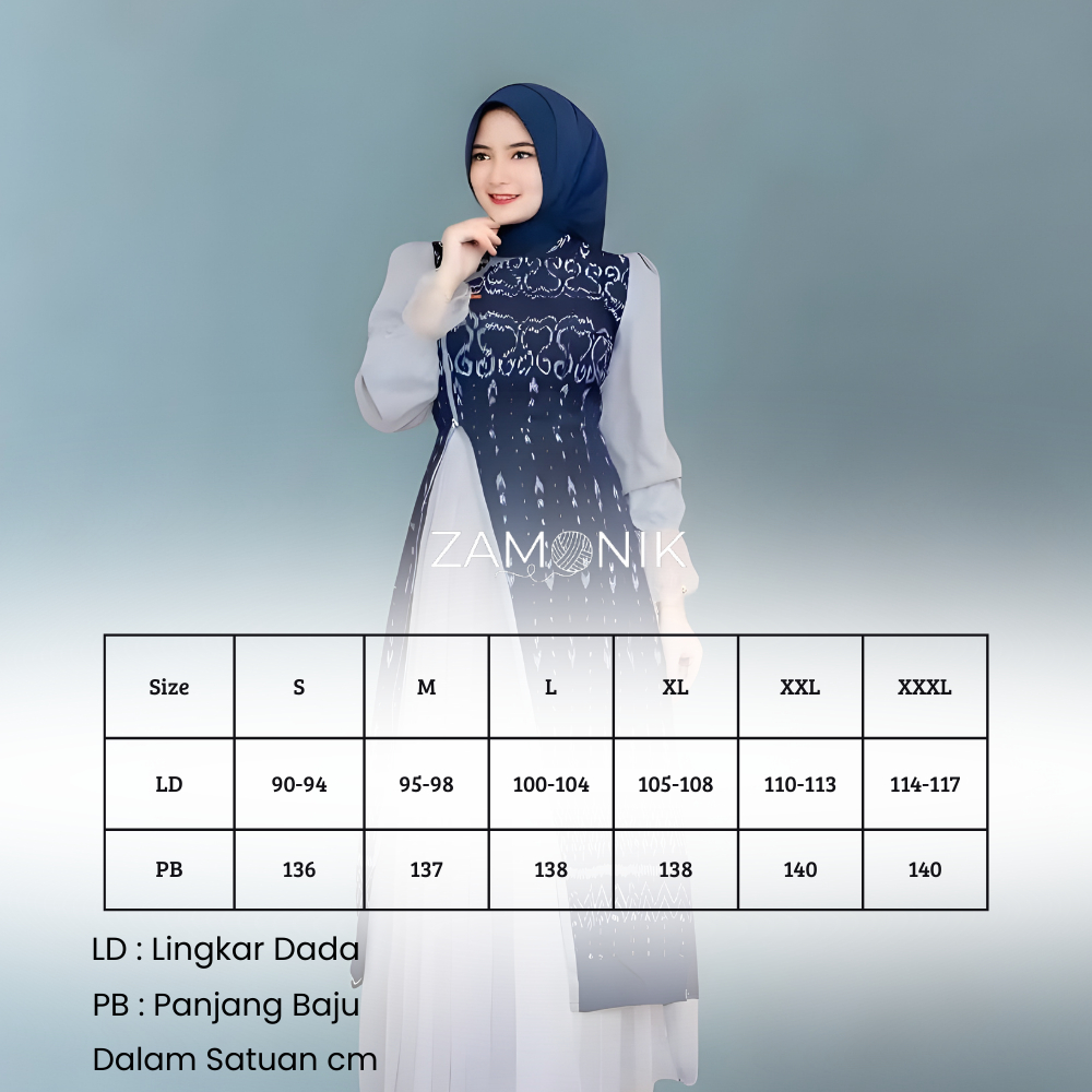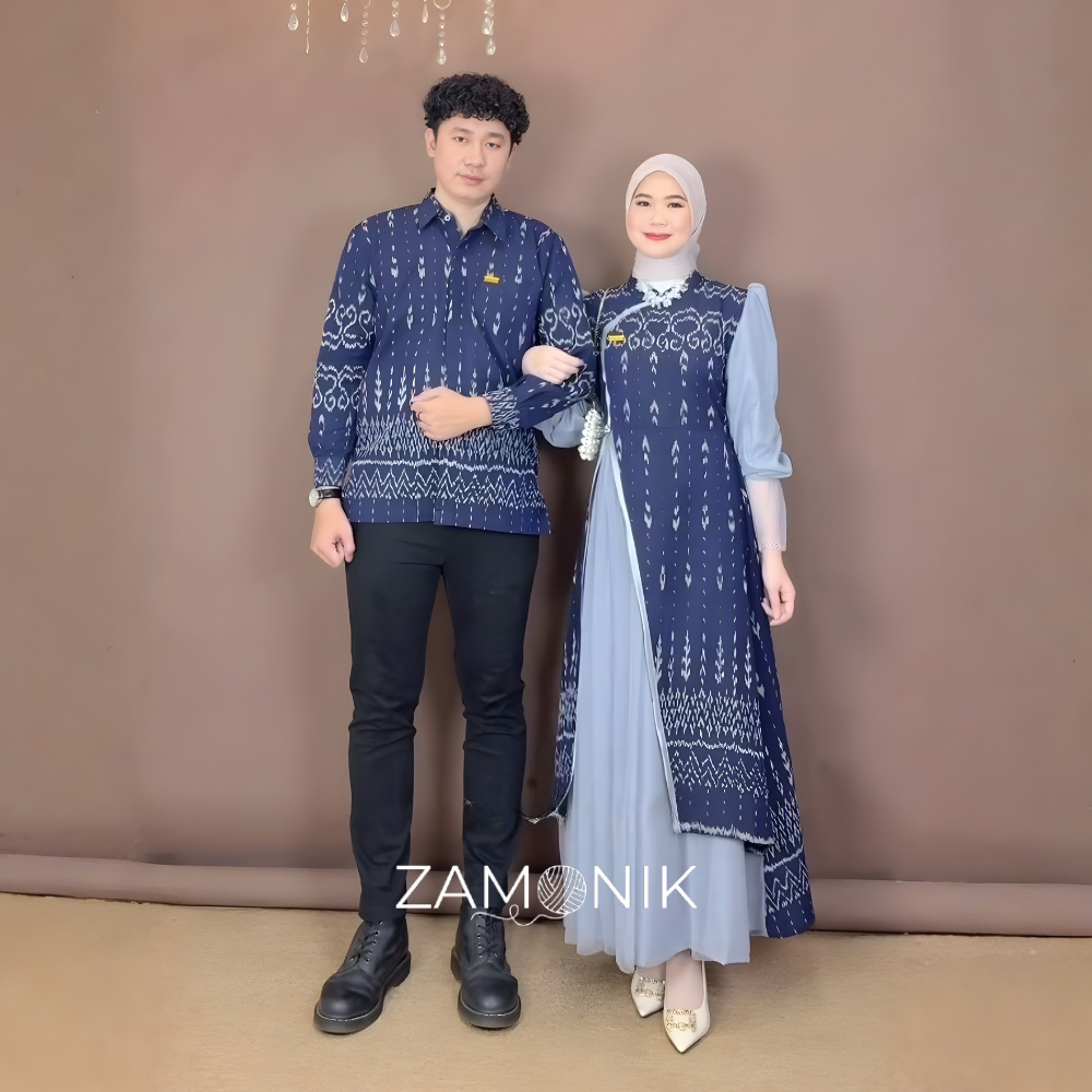 Zamonik - Set Baju Couple Gamis Dress Kemeja Tenun Simpel Mewah Elegan Snow Navy