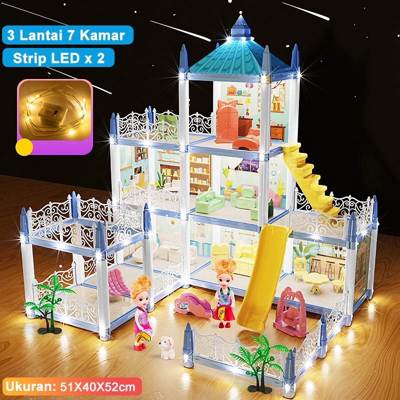 3D Princess Big Villa DIY Rumah Boneka Pink Castle Bermain Rumah Dengan Slide Yard Kit Dirakit Rumah Boneka Mainan Anak