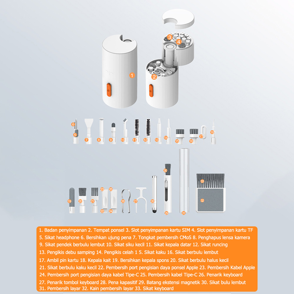 Kit Pembersih Putar Magnetik 33-In-1, Alat Pembersih Elektronik Multifungsi Dengan Batang Ekstensi & Dudukan Ponsel Untu