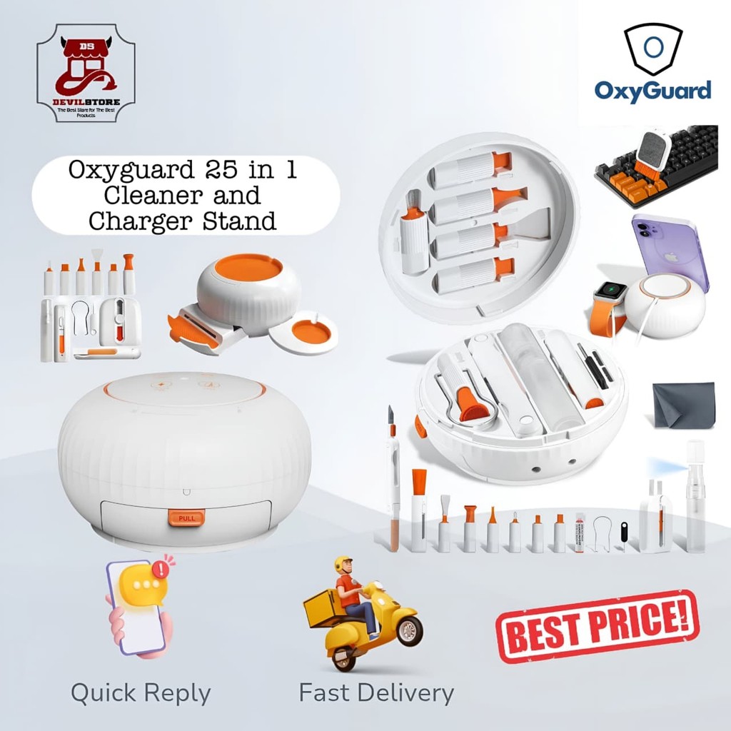 Oxyguard 25 In 1 Cleaning Kit Cleaner Pembersih Laptop Airpods Keyboard With Phone And Smartwatch Charging Stand