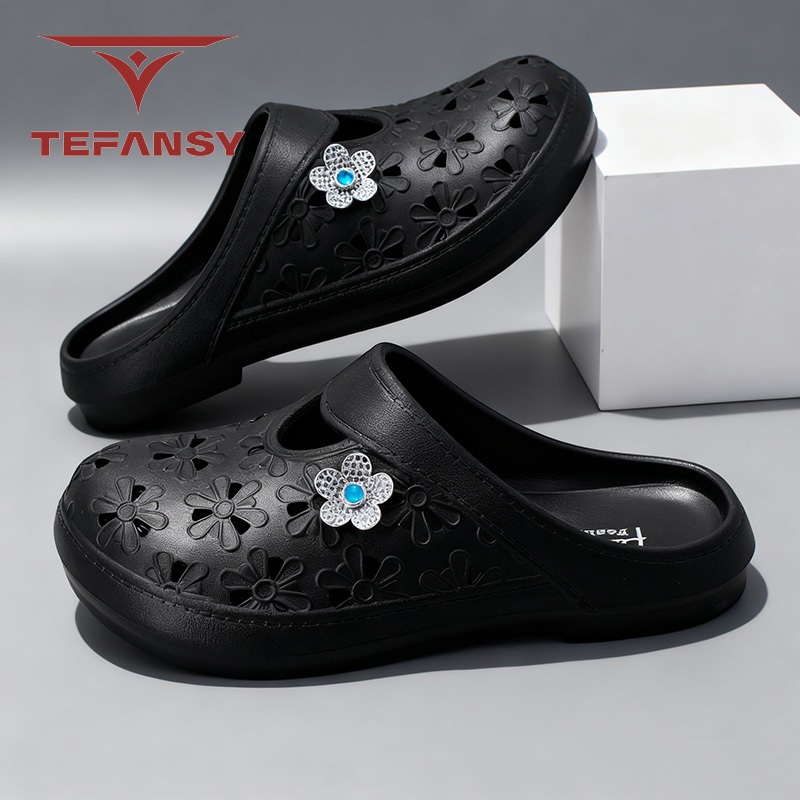Tefansy Sepatu Wanita Wedges Premium Sandal Wanita Slop Slip On Terbaru Sandal Selop Jelly Wanita