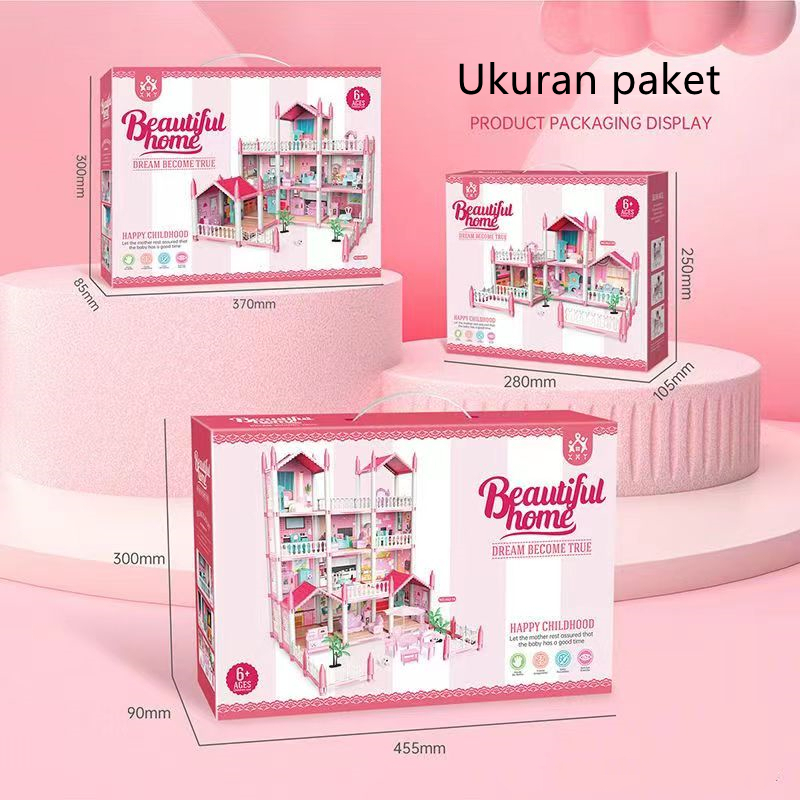 LUKATSU Mainan Rumah Boneka Princess Castle Rumah Princess Rumah Boneka Villa Princess Castle Dengan Lampu Dan Boneka Ma