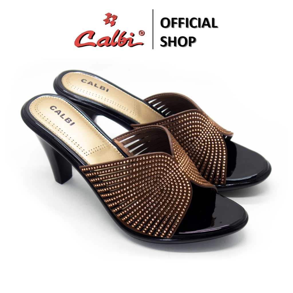 Calbi Bbex 2007 Sandal High Heels Kulit Motif Permata 8Cm Seserahan Premium Zeya